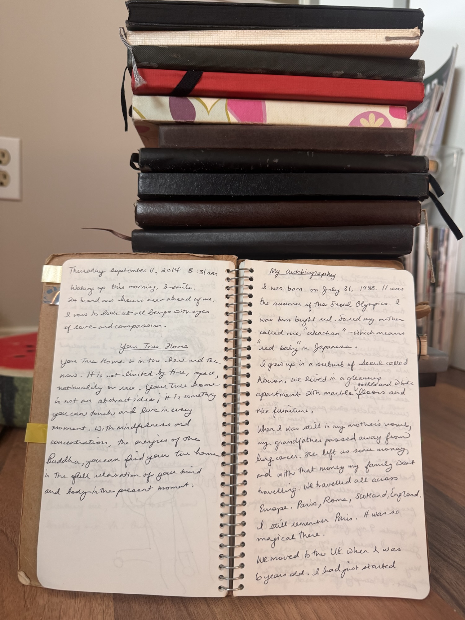 These days I’ve finally made the time (and mustered the courage) to look back through my old diaries spanning over 20 years. Lo and behold, my unedited and unredacted autobiography, circa 2014 at 26 years old. I had been living in the South Korean countryside for one year, teaching English at a public elementary school and drowning in existential angst. I wrote this to remind myself of why I shouldn’t disappear.